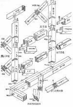 - 柱に幅は柱と同寸で、成がそれよりも大きな木材を差込み、強度を持たせる材を「差物」といいます。そのほかにも梁や柱に、木材を複雑に組み込む方法を「仕口」といいます。