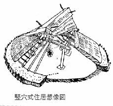 - やがて、地面に穴を掘り、屋根をかけるようになりました。この形式ですと、洞窟に縛られず、平地や高台にも住めるようになります。柱は、地面に直接埋める、いわゆる掘立柱でした。