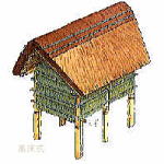 - 縄文時代の中頃(紀元前1000年頃)には既に、倉庫などには、高床式の建物が使われていたと考えられています。やはりこれも、「掘立柱」です。