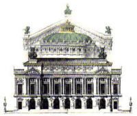 リバイバル主義:パリ・オペラ座(1825) ガルニエ設計、建築面積11360uだが、豪華さのため座席は2158にすぎない。この時期は古典様式が復活し、ネオクラッシック、ネオゴッシック、ネオルネサンス、ネオバロックなどが出てきた。 |