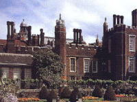 チューダー式:ハンプトンコート(1514) この様式はイギリス独特のもので、それまで教会や城郭建築のものだけであった建築の科学を貴族の邸宅に応用したものである。しかし、まだ城塞としての特徴をそなえているため、後になって牢獄などにも使用された建物もある。 |